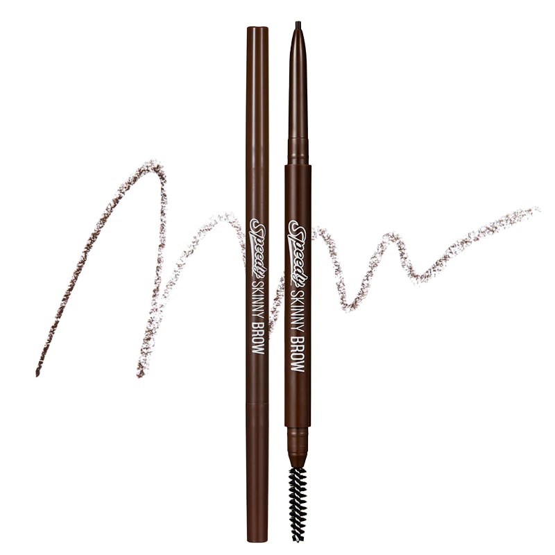PERIPERA Speedy Skinny Brow is a dual-ended brow pencil that is formulated to be clump-free to last all day. The super-slim pencil has an ultra-skinny tip of 1.5mm that lets you create delicate brows with perfect precision. The pencil is designed so you can draw each strand of your hair to mimic natural hair that won't get darker or deeper with multiple layers to have a consistent result to match your hair.